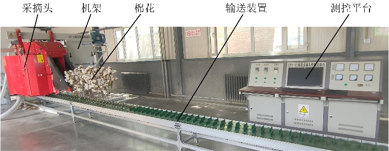 棉花采摘性能动态测试试验台由石河子大学jrs看球 兵团重点领域创新团队“棉花收获与加工技术研究”创新团队设计研制,用于棉花机械化收获相关教学和科研工作。能够模拟采棉机田间作业情况,采摘头主要工作参数——摘锭转速、滚筒转速、机器作业速度等对采净率、撞落棉损失率和含杂率等采摘关键性能指标的影响规律,主要工作参数可控可测,为新型国产采摘头的设计开发提供物理试验验证。同时,也用于采摘头综合性能检测、故障诊断和分析提供评价依据,该设备先后支撑了国家自然基金、兵团重大等四项科研课题的研发工作,申报专利8项,发表论文6篇。