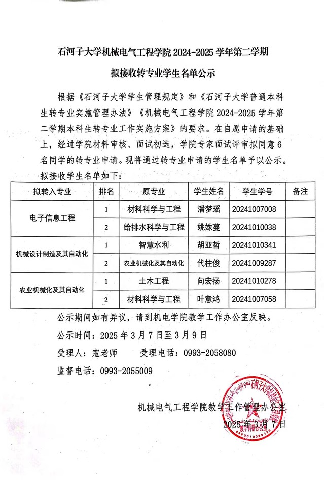 jrs看球-jrs足球直播 2024-2025学年第二学期转专业公示名单