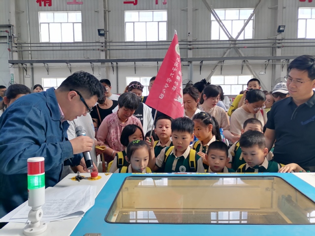 来到现代制造技术区,数控车床和数控铣床的自动化加工过程让孩子们大开眼界。当加工中心快速完成一件精密零件时,一名小朋友兴奋地说:“它比我的积木拼得还快!”在激光切割机前,张巍老师通过简单设置,将孩子们的班级卡通形象雕刻在亚克力板上,这份独特的“科技礼物”让孩子们爱不释手,争相收藏。