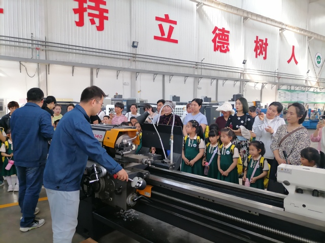 在实验中心,孩子们首先被传统机床的轰鸣声吸引。车床前,魏宗正老师用通俗易懂的语言为孩子们讲解“如何把尼龙棒变成小陀螺”;铣床和刨床的演示中,金属块在刀具下逐渐成型,孩子们目不转睛,连连惊叹:“像切蛋糕一样!”这些传统机械的直观展示,让孩子们深刻感受到机械制造的魅力与力量。