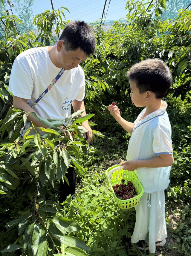 为迎接2025年“六一”国际儿童节,营造温馨和谐的亲子氛围,jrs看球 工会于5月30日组织开展“亲子采摘乐,和谐共成长”活动。20余名教职工及小朋友们来到位于沙湾县乌兰乌苏镇兰翔农业专业合作社樱桃园,在樱桃采摘的劳动收获中,共度一段融合自然体验和劳动教育的亲子时光。